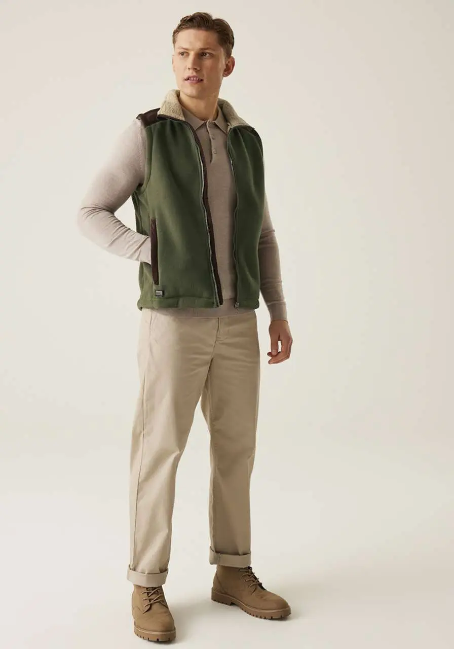 Informacije o materijalu 440 g/m² sherpa podstavljena poliesterska mikroflis tkanina paneli od kordne tkanine na ramenima i laktovima posebne značajke središnji prednji patentni zatvarač 2 donja džepa s patentnim zatvaračem