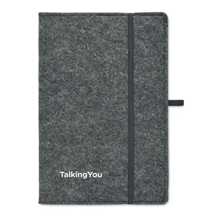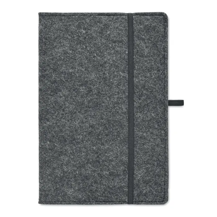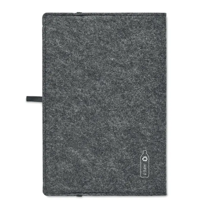€2.20A5 bilježnica s koricama od RPET filca 160 recikliranih liniranih stranica (80 listova / 70 g/m²) elastična petlja za olovku
