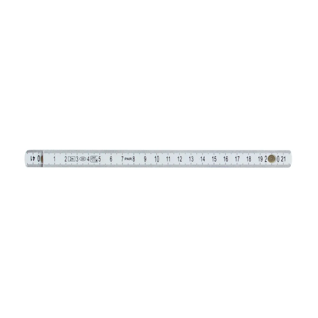 Desetodijelni metar duljine 2 m bijele boje s vrućim tiskom podjela