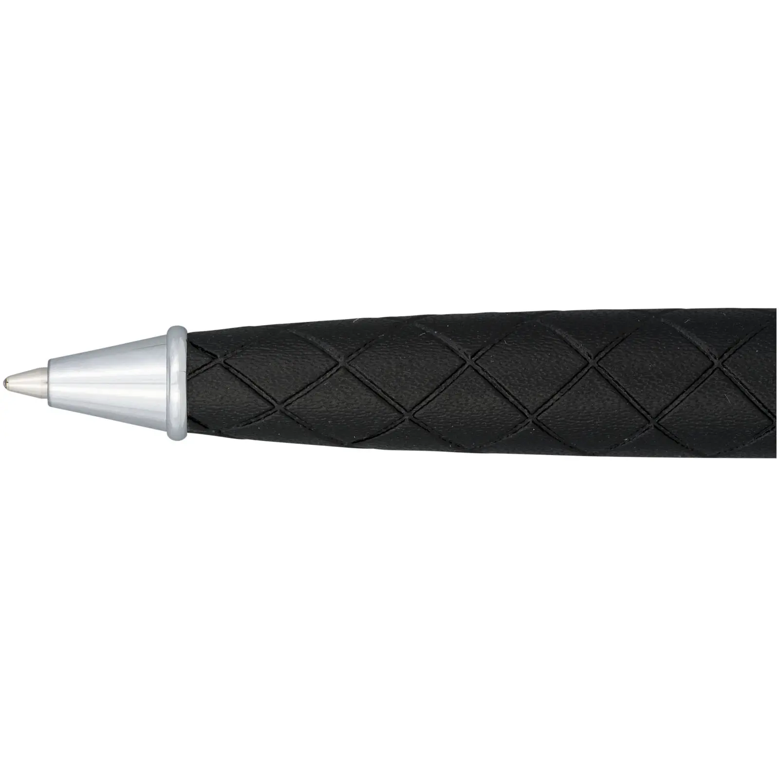 Kemijska olovka s donjim dijelom presvučenim kožom s uzorkom križnih linija, uključuje crni uložak visoke kvalitete, isporučuje se u LUXE gift boxu (16x4,5x2,5 cm)
