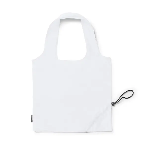 €1.12Foldable shopping bag made from 190T RPET. It folds into itself at the lower corner in a triangular shape, using an adjustable drawstring with a black stopper, making it more practical to store.