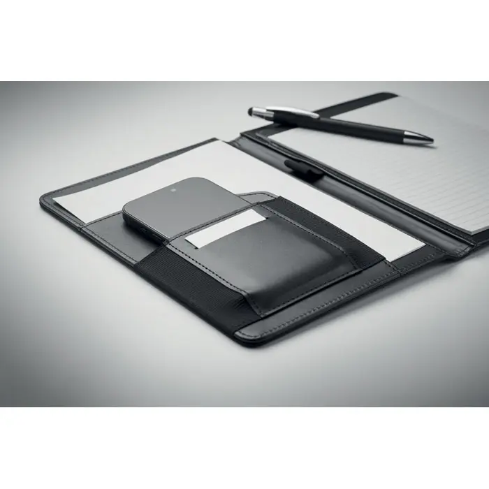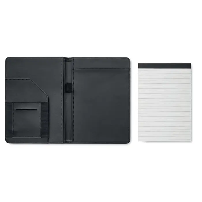 €4.91A5 mapa od dvojnog 300D RPET materijala, zamjenjiva A5 bilježnica s 40 bijelih liniranih stranica od bambusovog papira (20 listova), držač za olovku, pretinci za kartice i jedan veliki unutarnji pretinac
