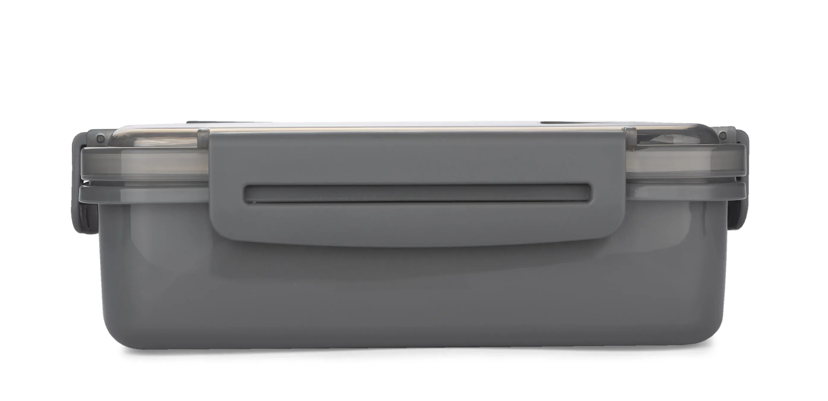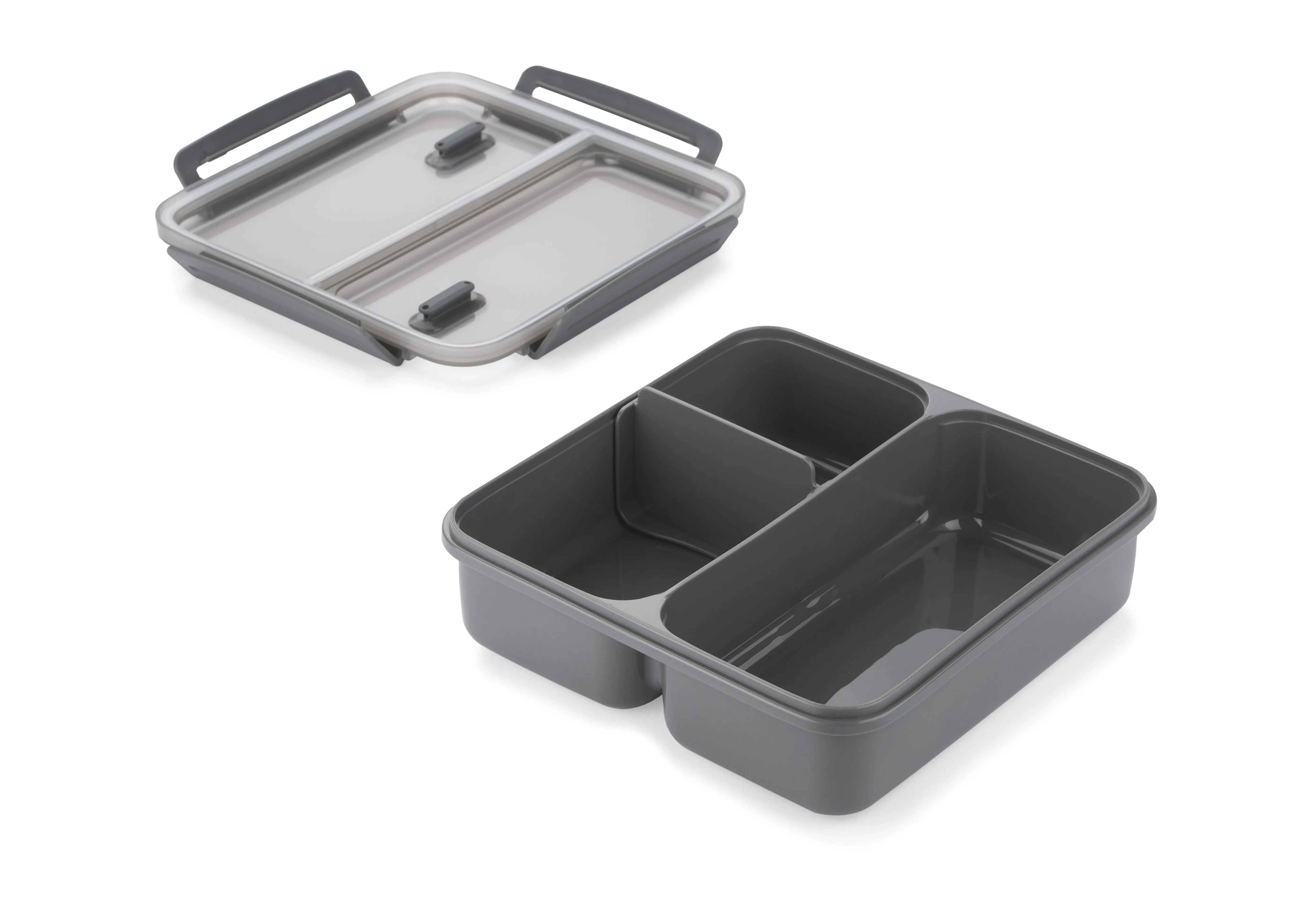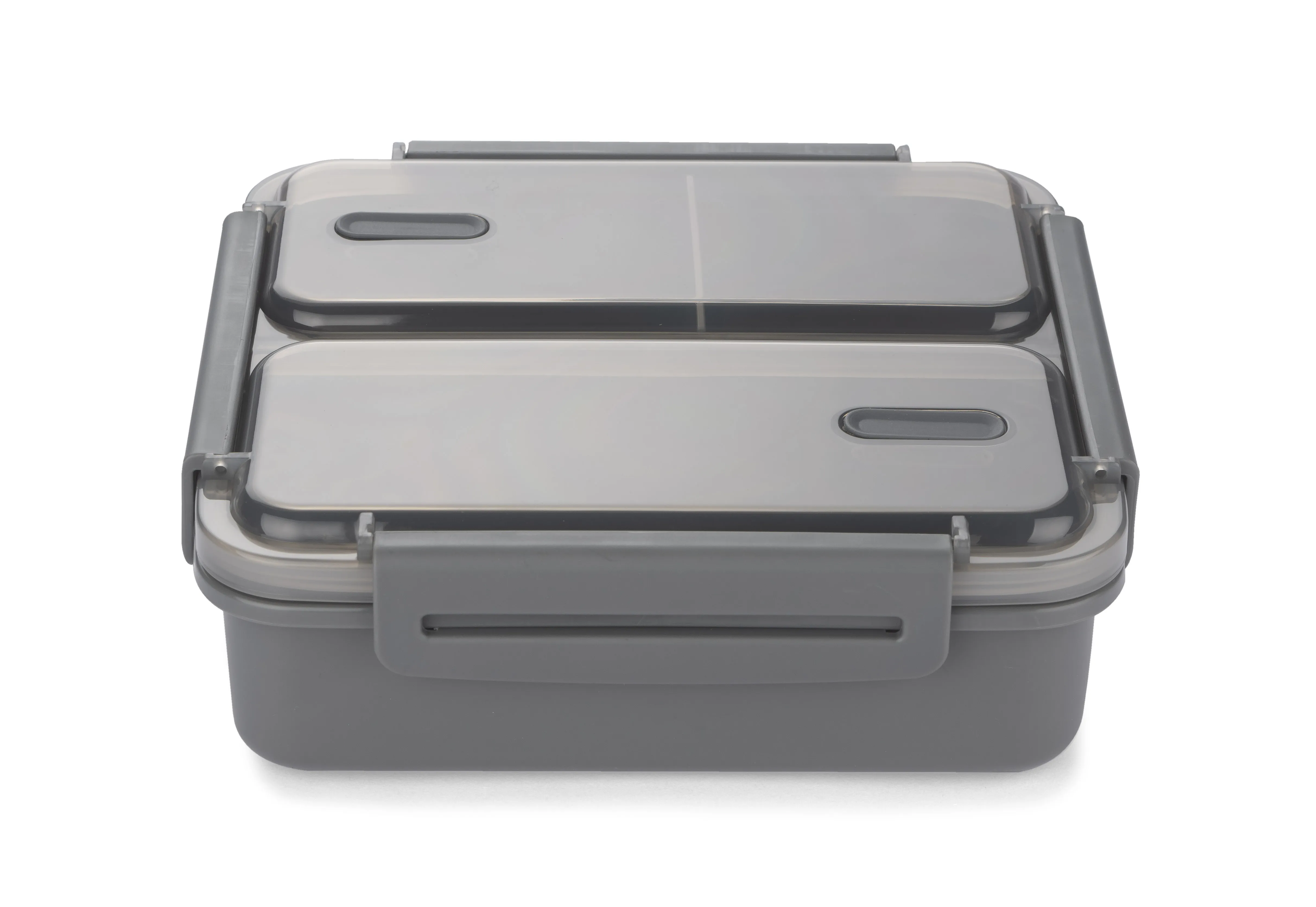 DUO lunch box s dva glavna pretinca i dodatnim odvojivim separatorom, brtva u poklopcu, zatvaranje s četiri kopče, kapacitet 1100 ml, izrađen od polipropilena sigurnog za kontakt s hranom