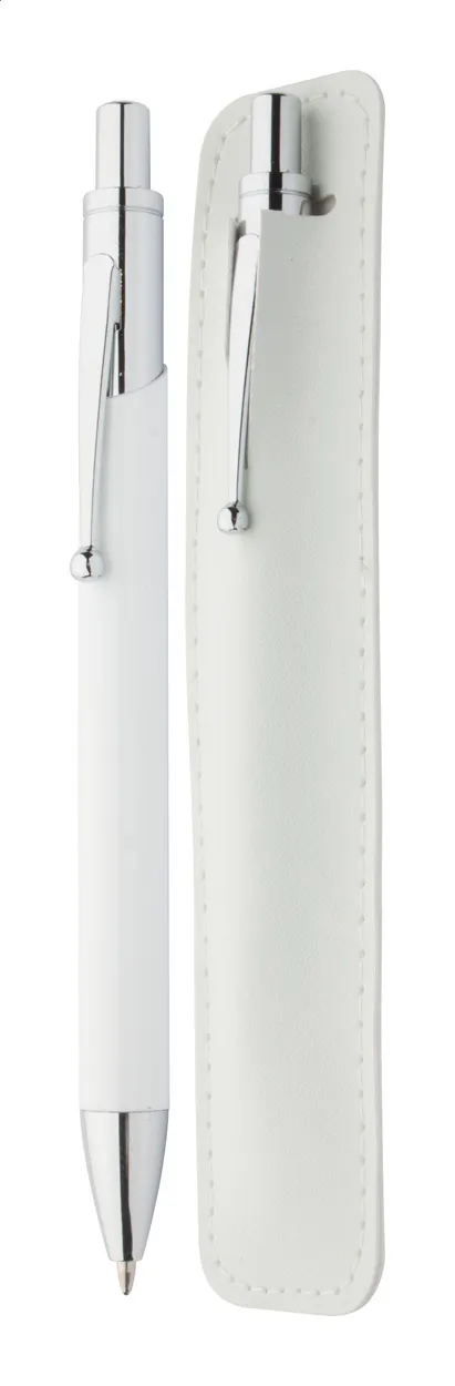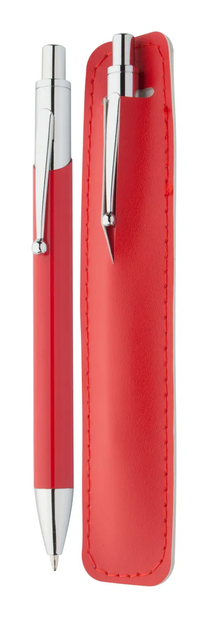 Metalna kemijska olovka u odgovarajućoj kožnoj futroli od PU materijala. S plavim punjenjem.