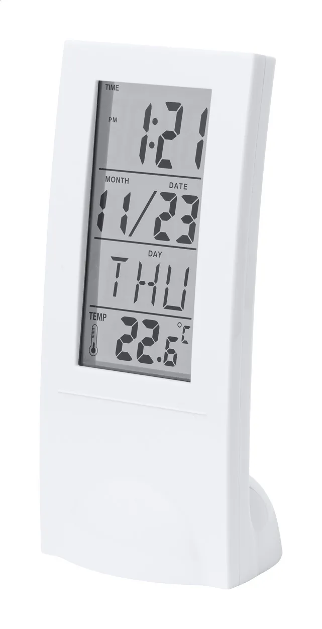 Digitalni sat i meteorološka stanica od ABS plastike s kalendarom, alarmom, termometrom i prikazom vlage, radi na 2 AAA baterije, isporučuje se bez baterija
