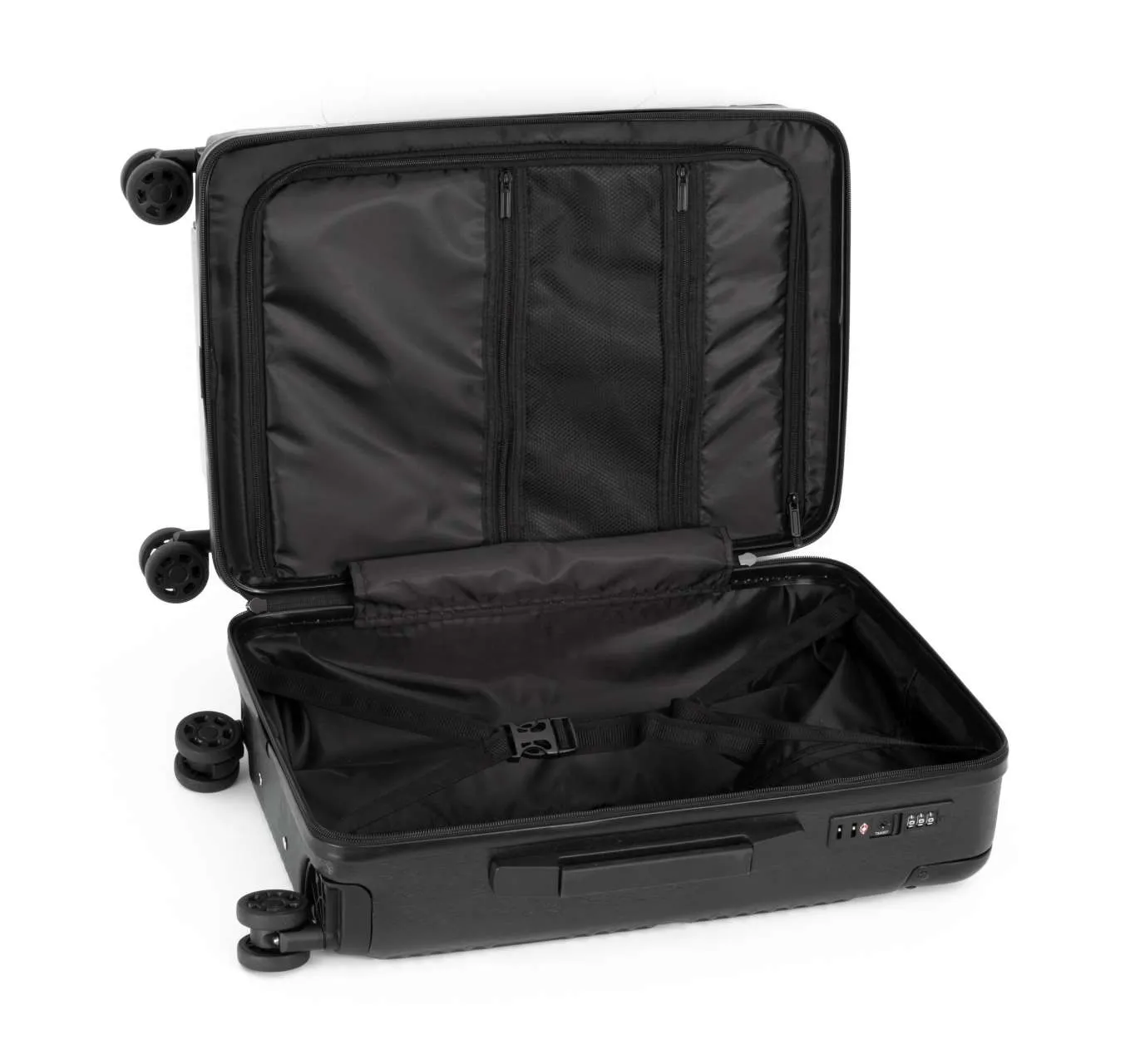 €59.08100% polikarbonat, kabinski kofer s geometrijskim dizajnom Geoline, aluminijski okvir, 4 višesmjerna kotača, bočne zaštitne nožice, gumeni kutovi za dodatnu zaštitu, produživa gornja i bočna ručka, prednja traka za nošenje torbe s dokumentima, dva unutarnja pretinca uključujući jedan s remenom za pričvršćivanje i drugi s patentnim zatvaračem i džepovima za dodatke, TSA kombinirani zatvarač