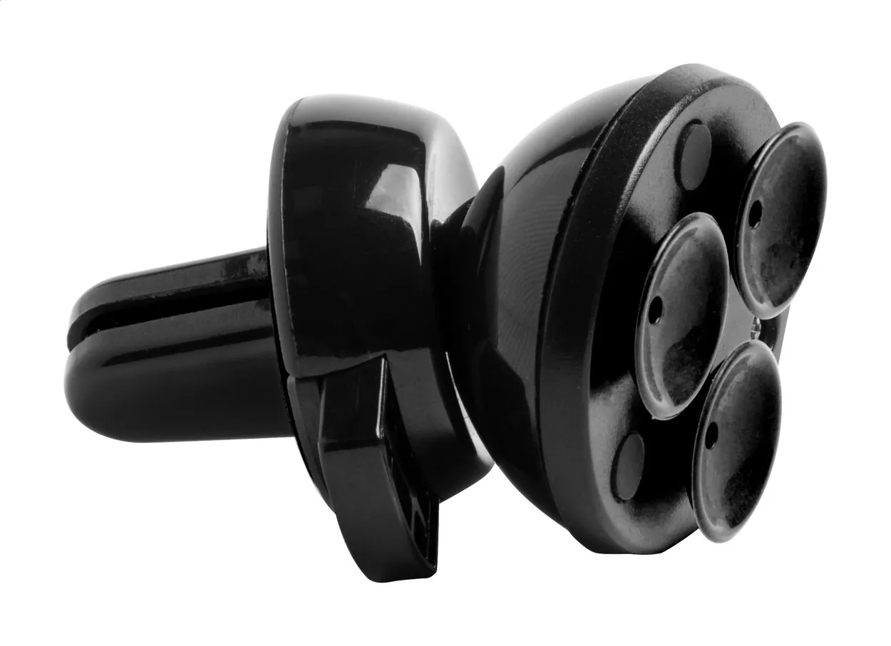 Držač za mobitel za automobil s montažom na ventilaciju i usisnim čašama za pričvršćivanje uređaja. Dolazi u poklon kutiji.
