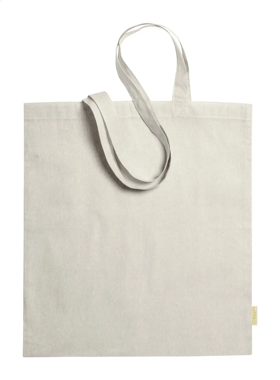Ponovno upotrebljiva, reciklirana pamučna torba za kupovinu s dugim ručkama. 100% reciklirani pamuk, 120 g/m².