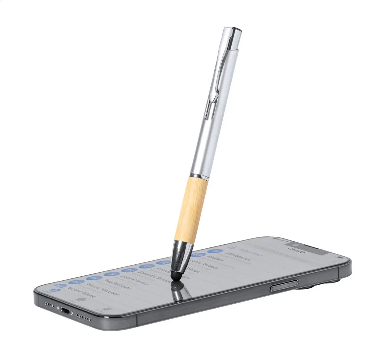 €0.70Kemijska olovka i olovka za touchscreen od ABS plastike s drškom od bambusa i kromiranim dijelovima, s plavim punjenjem