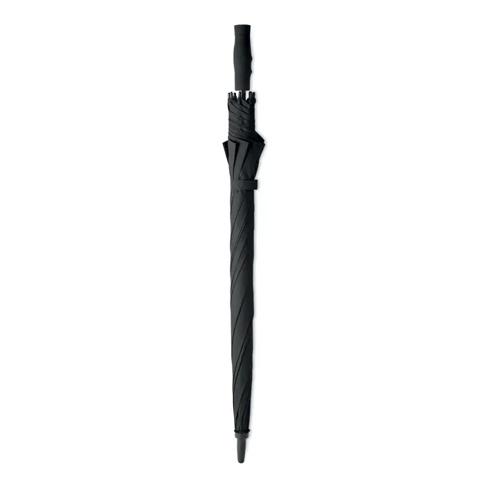 €7.99Kišobran otporan na vjetar s automatskim otvaranjem, promjera 27 inča, izrađen od 190T pongee materijala s osovinom i rebrima od fiberglasa. Crni plastični vrhovi i gornji dio. Ravna crna ABS drška s gumiranim završetkom. Ručno zatvaranje.