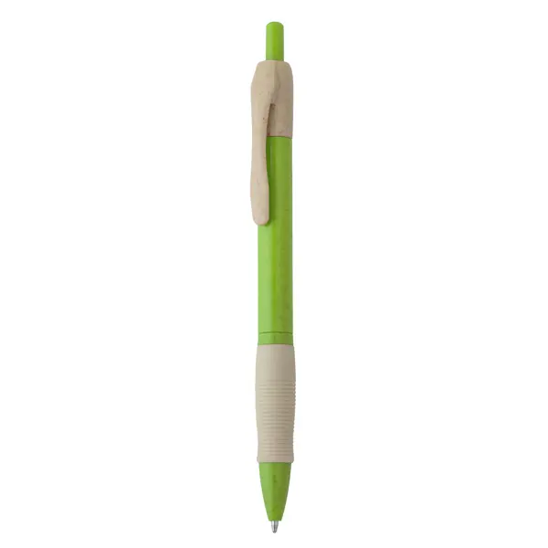 Kemijska olovka s klipom napravljena od pšeničnih vlakana i ABS materijala s mekanim držalom. Plava tinta.