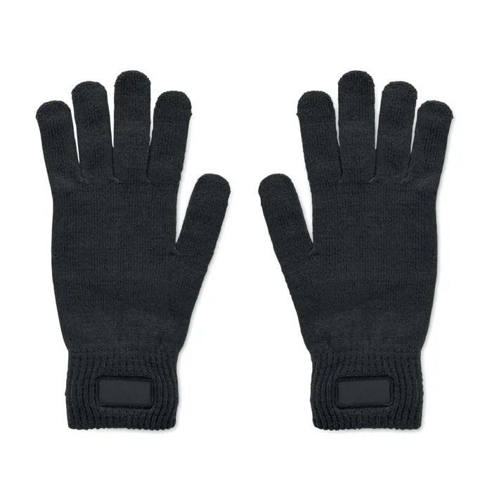 Pletene rukavice iz mekog rastezljivog RPET poliestera s ukrasnom naljepnicom.