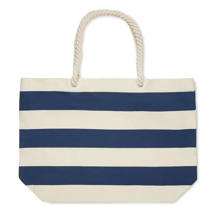 Prugasta torba za plažu ili kupovinu od pamuka s ručkom od užeta, 220 g/m²