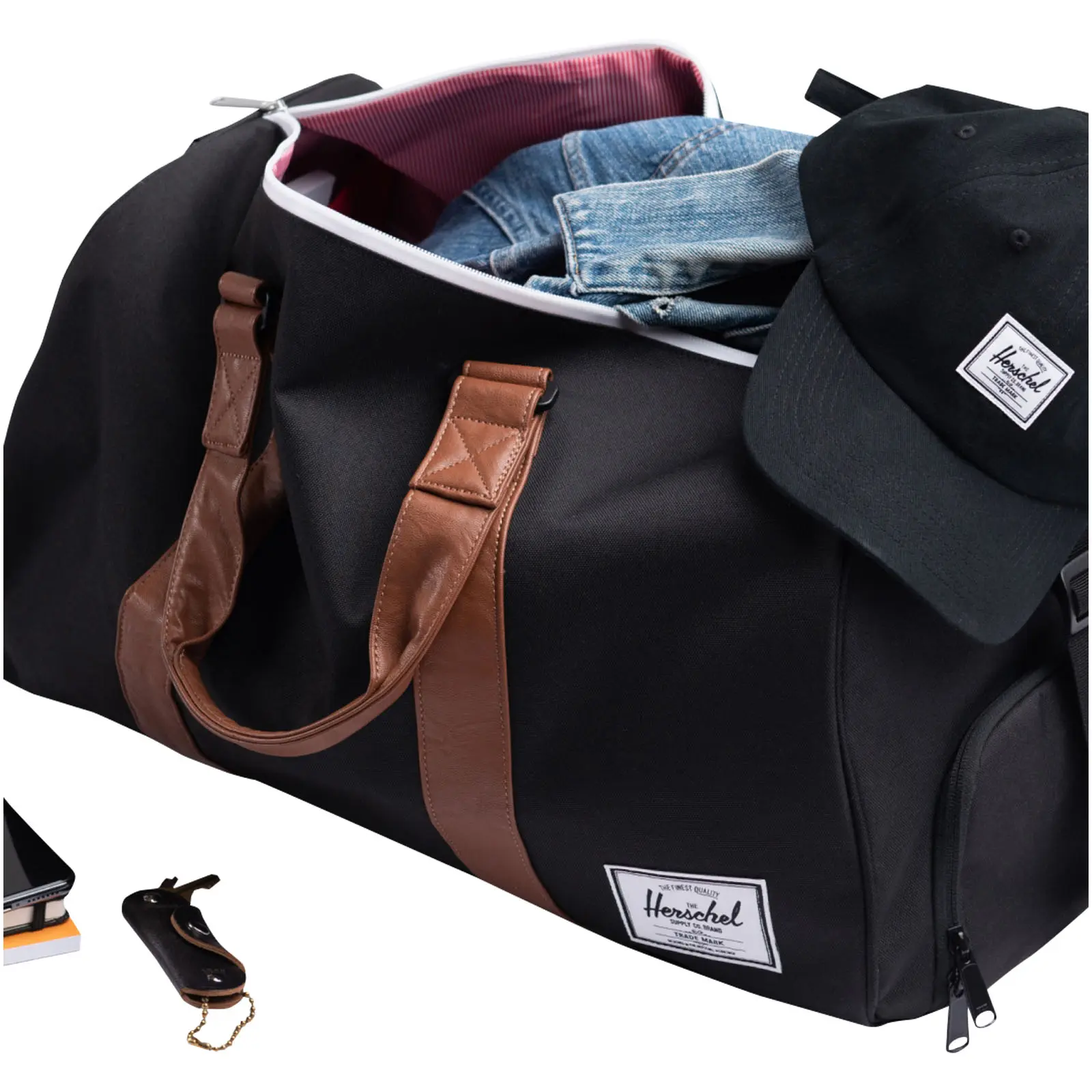 €153.45Tražite putnu torbu za dug put - Herschel Novel™ putna torba je vaša. Ova torba je dizajnirana za izdržljivost i inteligentno organiziranje, s potpisanim odjeljkom za cipele za smještaj dodatnog para. Majstorski izrađena od 100% EcoSystem™ tkanina, savršeno se uklapa u pretince iznad glave ili prtljažnike, čineći je savršenim putnim suputnikom. Tkanina 600D je pažljivo izrađena od 100% recikliranih boca za vodu nakon potrošnje, dok vodootporni patentni zatvarač osigurava zaštitu vaših dragocjenih stvari. Ova putna torba dizajnirana je s ručkama od veganskog kože i odvojivim remenom za ramena od glatke tkanine, s EVA podstavom, za udobno nošenje. Herschel Novel™ putna torba također ima vanjski džep za lakše organiziranje i pristup vašim stvarima. S volumenom kapacitetom od 43L, ova putna torba je savršen putni partner za vašu sljedeću avanturu.