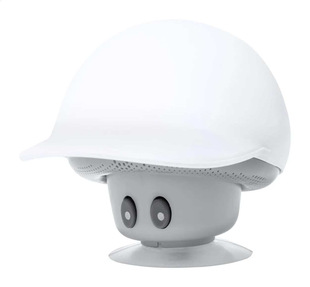 Mini Bluetooth zvučnik u obliku gljive s usisnom čašom, funkcijom za pozive bez upotrebe ruku i punjivom baterijom. Uključuje USB kabel za punjenje.