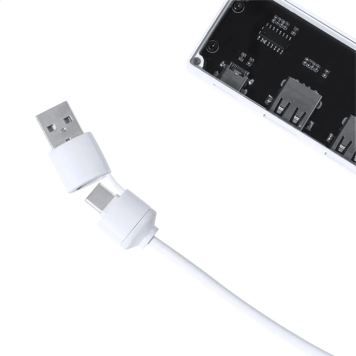 €13.32Poluprozirni USB hub s vidljivim elektroničkim komponentama, 2 USB i 1 USB-C priključak, USB 2.0, uključuje kabel s USB i USB-C priključcima