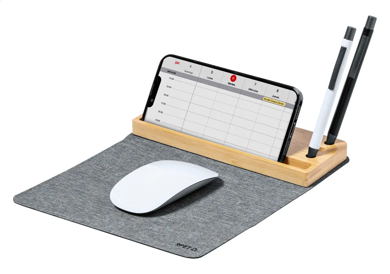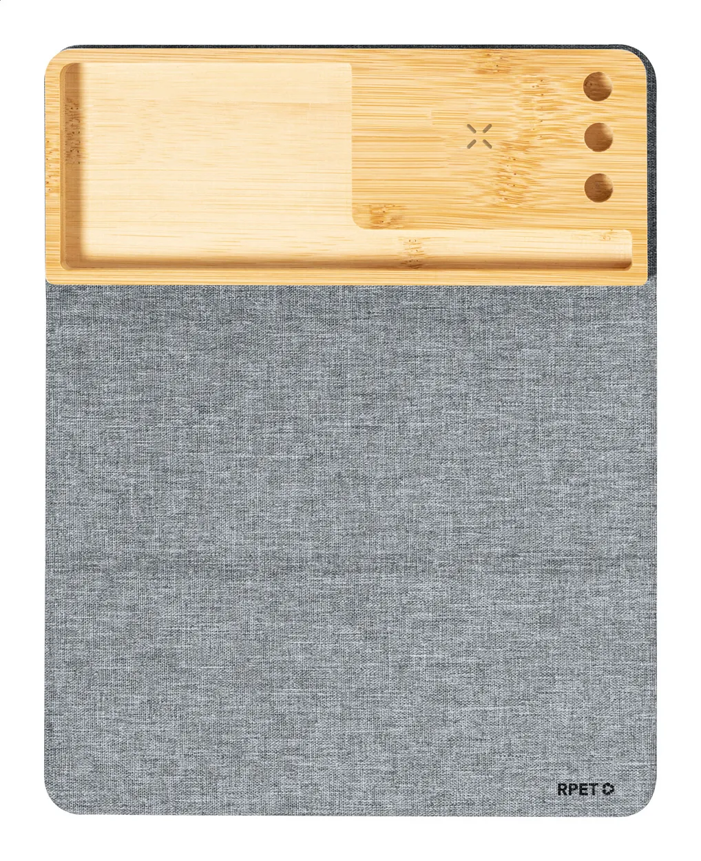 €32.56Sklopiva podloga za miš od RPET poliestera sa silikonskom podlogom, s ugrađenim bežičnim brzim punjačem (15W) i držačem za mobitel od bambusa, 300D RPET poliester, uključuje USB kabel za punjenje