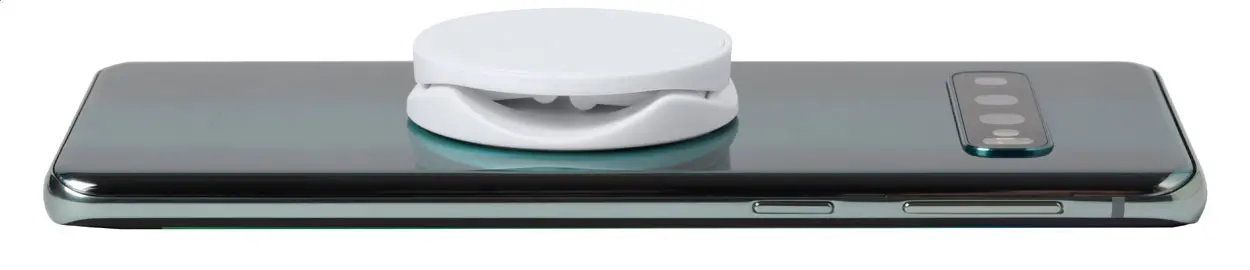 Mobilni držač od plastike u obliku kruga s samoljepljivom bazom.