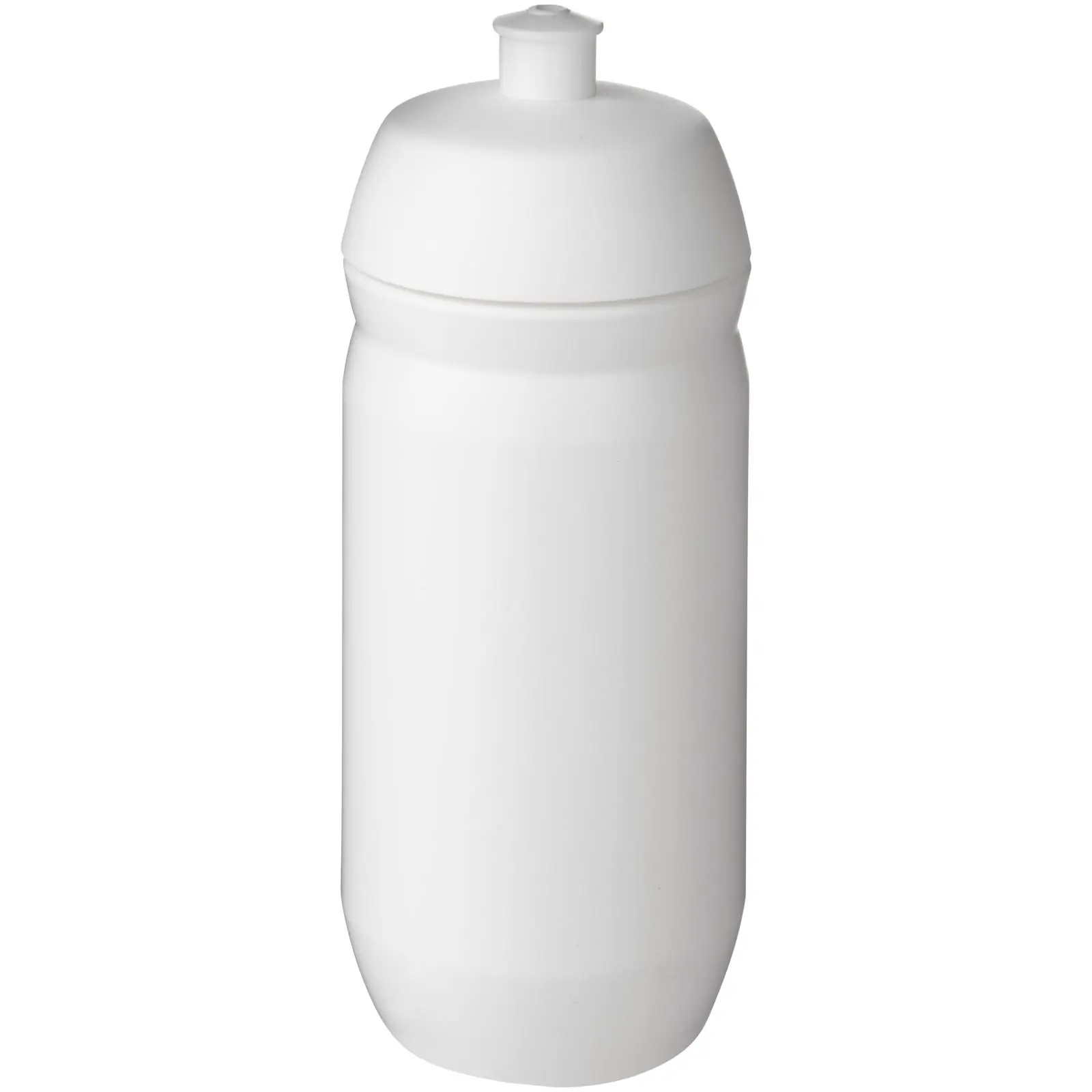 Jednostruka sportska boca s poklopcem koji se zavija i povlači prema gore. Izrađena od fleksibilne MDPE plastike, ova stisnuta boca idealna je za sportska okruženja. Kapacitet je 500 ml. Proizvedeno u Ujedinjenom Kraljevstvu. U skladu s EN12875-1 i sigurno za pranje u perilici posuđa.