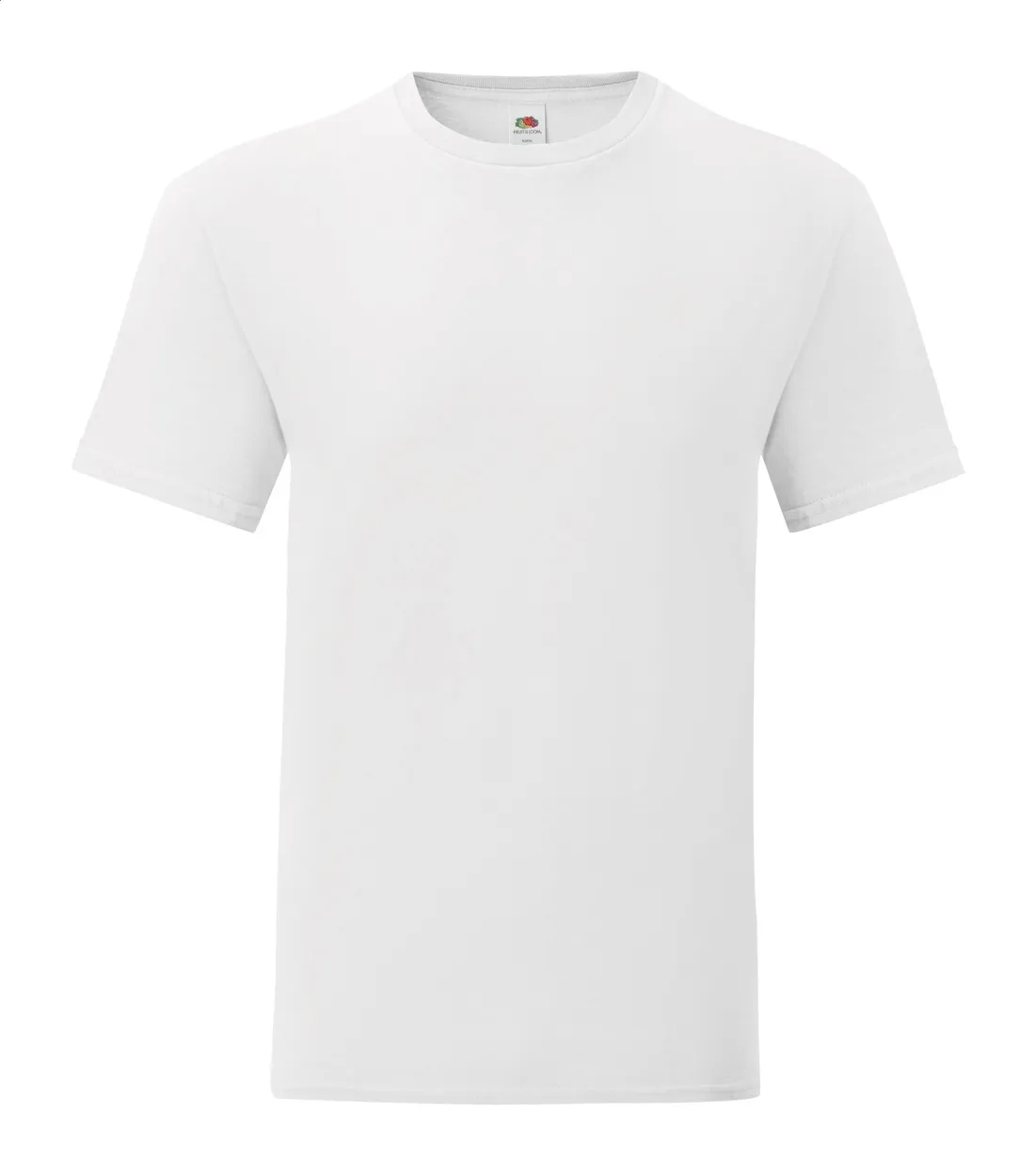 Odrasla, majica s okruglim izrezom u bijeloj boji. 100% češljani prstenasto pređeni pamuk, 140 g/m². Proizvod marke Fruit of the Loom.