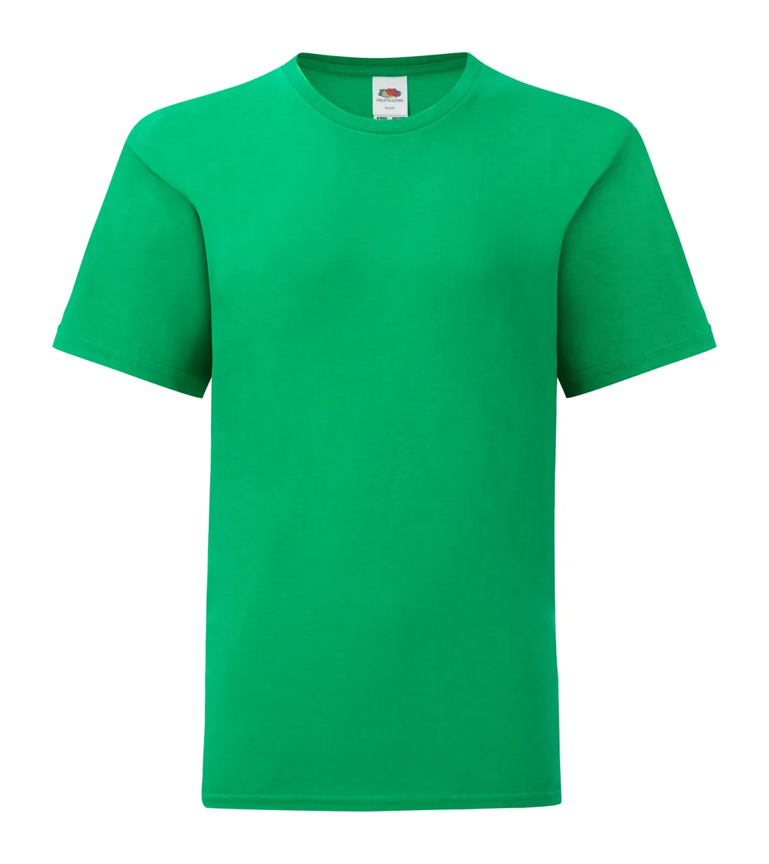 Dječja, okruglog ovratnika majica u boji. 100% češljani prstenasto pređeni pamuk, 150 g/m². Proizvod marke Fruit of the Loom.