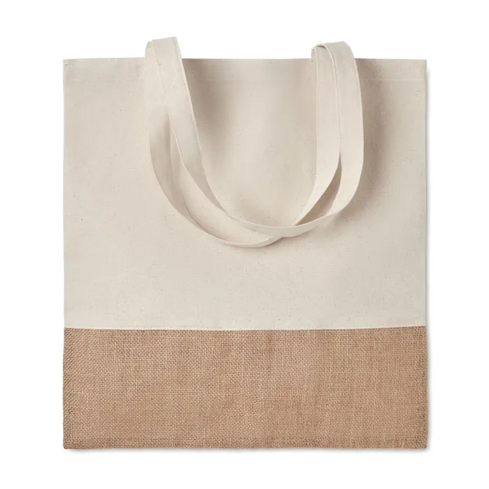 Twill pamučna torba za kupovinu s detaljem od jute, duge ručke, 160 g/m²
