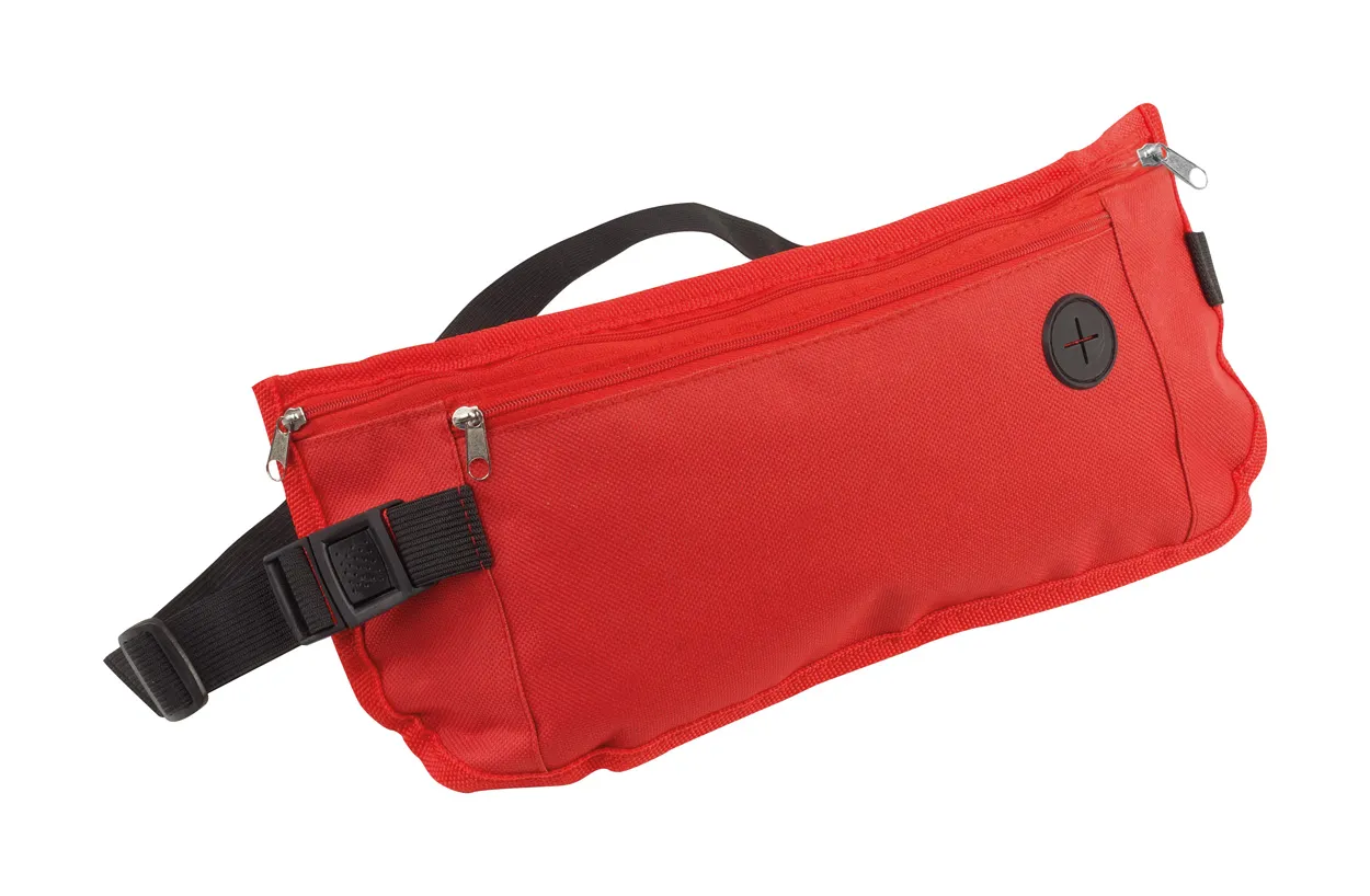 Torba za struk s 2 pretinca na patentni zatvarač i otvorom za slušalice. Materijal: 600D poliester.
