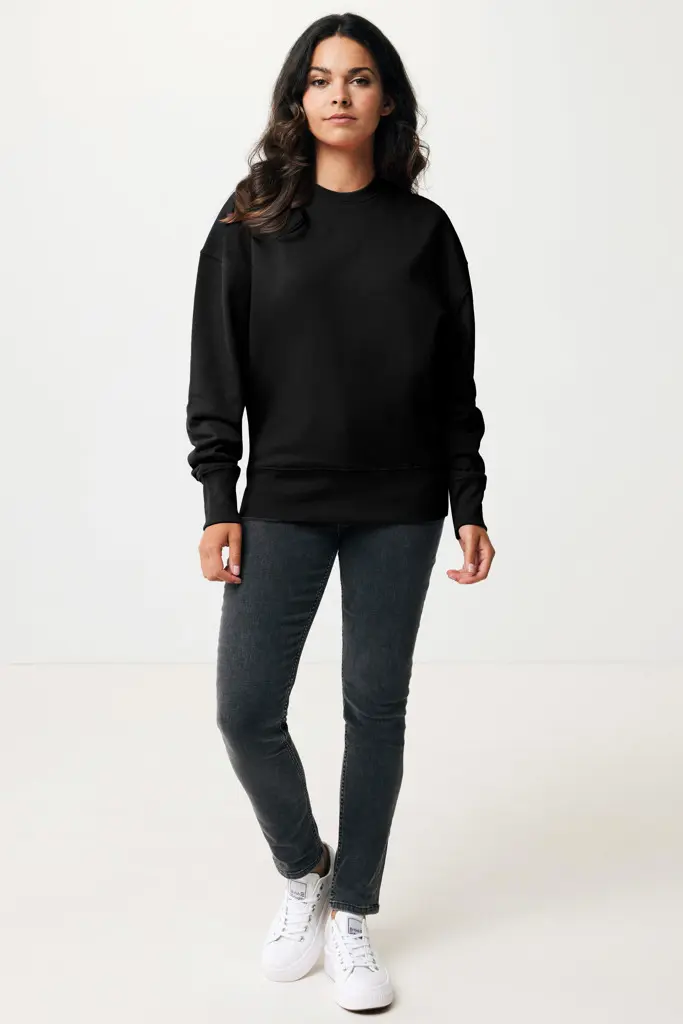 €17.87Uniseks gornja majica opuštenog kroja s okruglim izrezom izrađena od 100% pamuka, od čega je 50% recikliranog i 50% organskog, u 340 G/M². Majica ima spuštene ramene linije, okrugli izrez, šire dugi rukavi i 2x2 rebrasti rub. Unutrašnjost je od mekog flisa za dodatnu udobnost. Upotreba autentičnih recikliranih i organskih materijala te tvrdnje o utjecaju na okoliš su garantirane korištenjem AWARE™ disruptivnog fizičkog tragača i blockchain tehnologije. Skaniranjem QR koda, dobit ćete pristup posvećenom digitalnom putovnici proizvoda. 2% prihoda od svakog prodanog proizvoda bit će donirano Water.org. Ovaj proizvod je certificiran prema OEKO-TEX® STANDARD 100 Centexbel. Zbog prirode recikliranih konaca, mogu se pojaviti nečistoće i varijacije u boji.