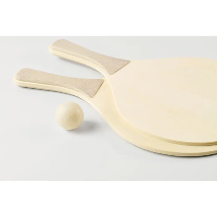 €8.58Beach set with 2 plywood rackets featuring a chess and ludo game boards. Includes 1 TPR ball, dice and checkers. Packed in RPET mesh zippered carrier bag.