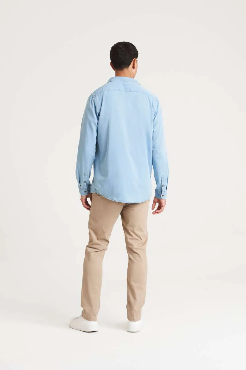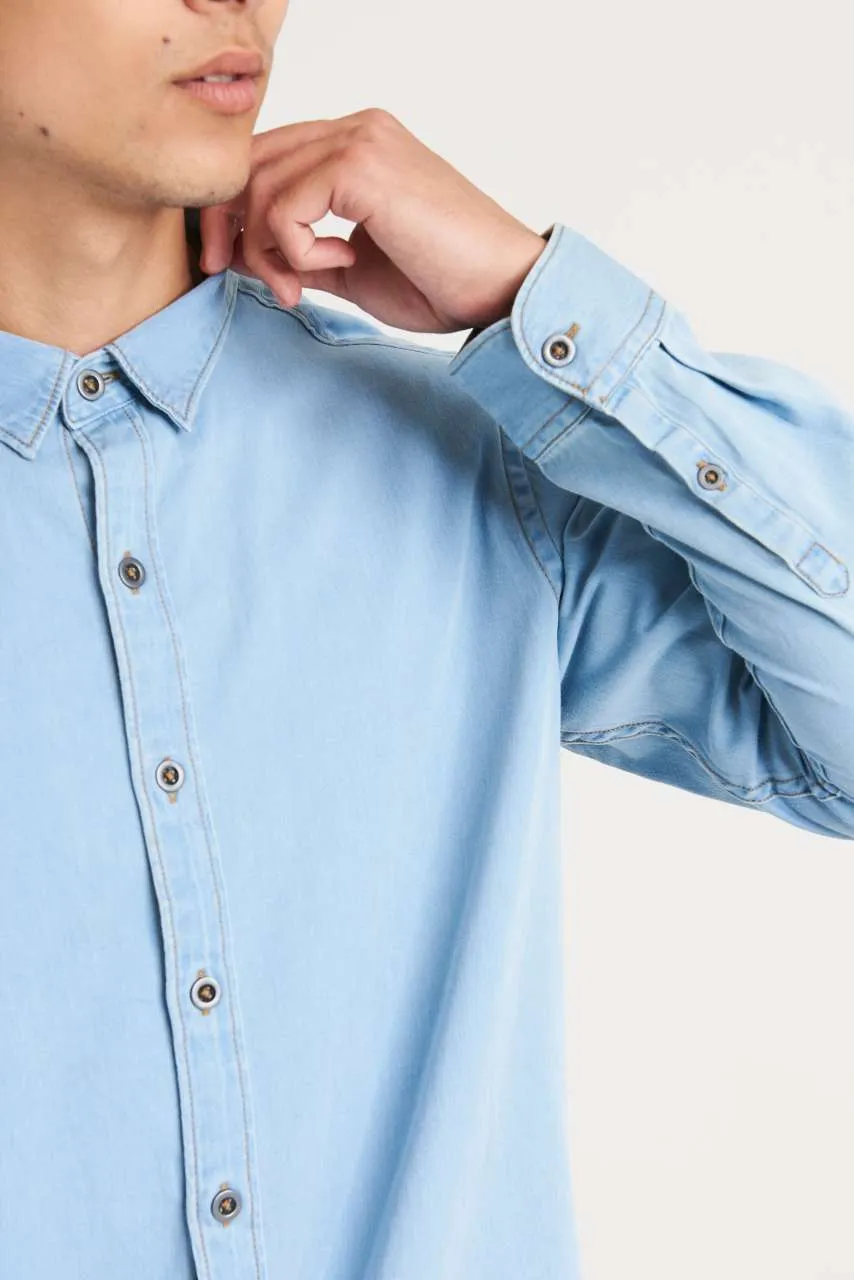 100% pamuk, opušteni kroj, bez džepova za maksimalnu površinu za tisak, uska kragna, leđni jaram, satensko tkanje, kopčanje na gumbe po sredini, porub s jednim šavom, kontrastni šav na otvorima za ruke, kragni i prednjem dijelu, manšete s 2 gumba