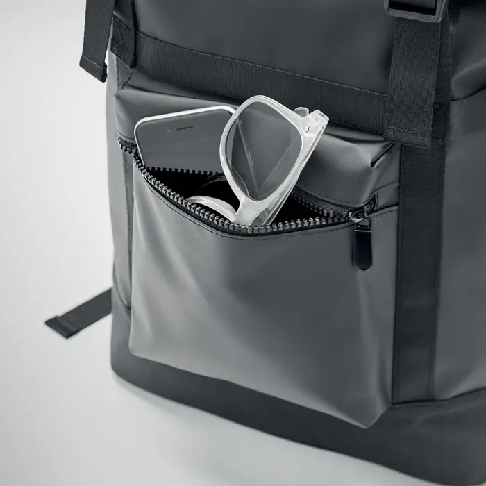 Rolltop ruksak od 50C cerade s podstavljenim leđima, ojačanim dnom i naramenicama, prednji džepovi s patentnim zatvaračem