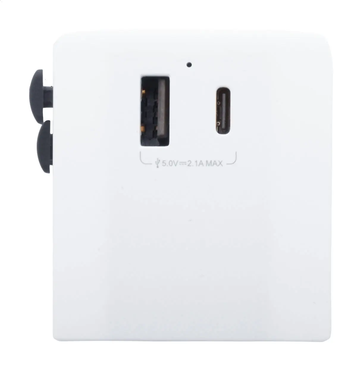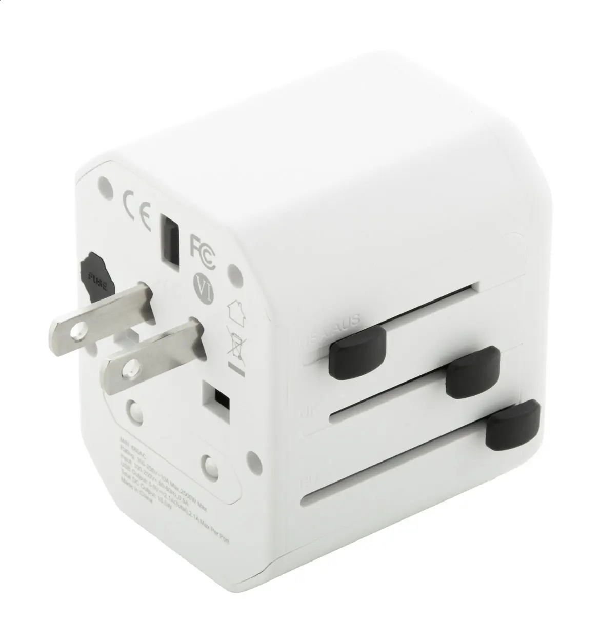 €27.75Univerzalni svjetski putni adapter od ABS plastike s ugrađenim utikačima za SAD, Europu, UK i Australiju, s 1 USB i 1 USB-C priključkom za punjenje