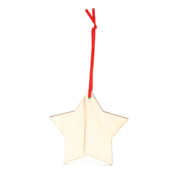 Drveni božićni ukras u dva dizajna (zvijezda i bor), uključena crvena vrpca za vješanje na božićno drvce