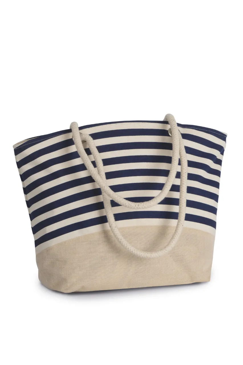 70% juta / 30% pamuk, torba za kupovinu ili ruka torba s mornarskim printom od pamučnog platna i jute, pamučne ručke s unutarnjom vezicom u prirodnoj boji, unutarnji džep, zatvaranje patentnim zatvaračem, odgovara s KI0752 torbicom iz iste kolekcije