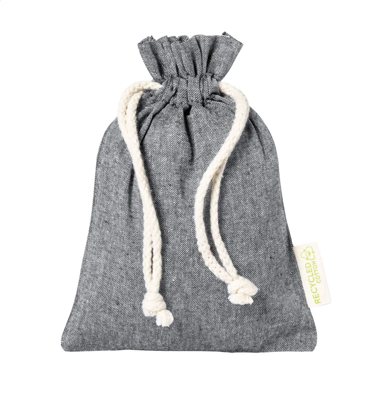€1.70Ponovno upotrebljiva vreća za proizvode od recikliranog pamuka s vezicom za zatvaranje. 100% reciklirani pamuk, 120 g/m².