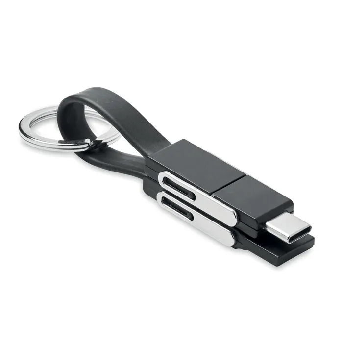 Privjesak za ključeve s 4-u-1 kabelom za punjenje. Ulaz/Izlaz: Type-C x2, Type-A, Micro USB.