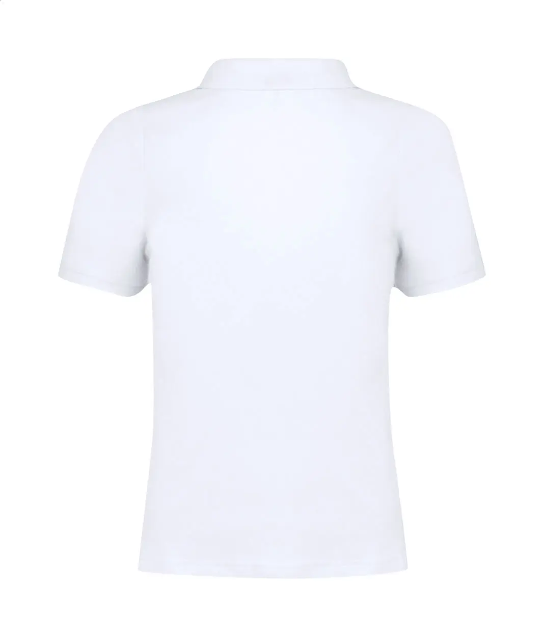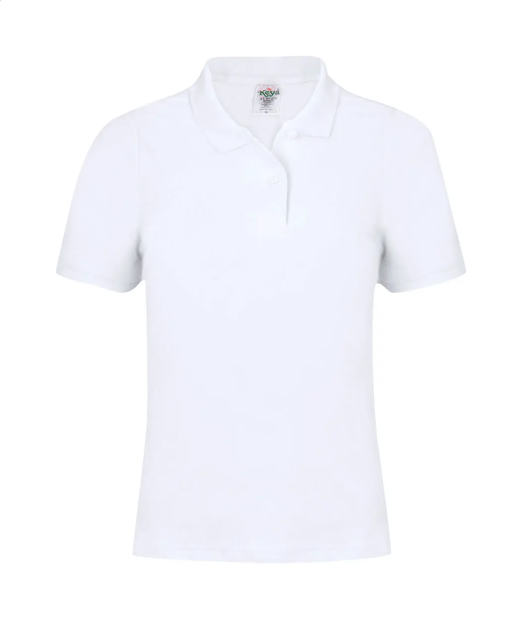 Ženska bijela polo majica s 2 gumba od 100% pique pamuka, 180 g/m². Proizvod marke Keya.