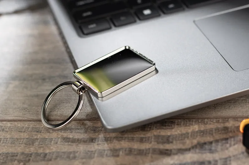 €1.93MOTI je pravokutni privjesak za ključeve izrađen od visokokvalitetnog metala, dizajniran za uslugu označavanja doming tehnikom. Ova tehnologija omogućuje preciznu primjenu logotipa tvrtke u obliku estetske smolene naljepnice, koja stvara efekt sličan 3D-u.
