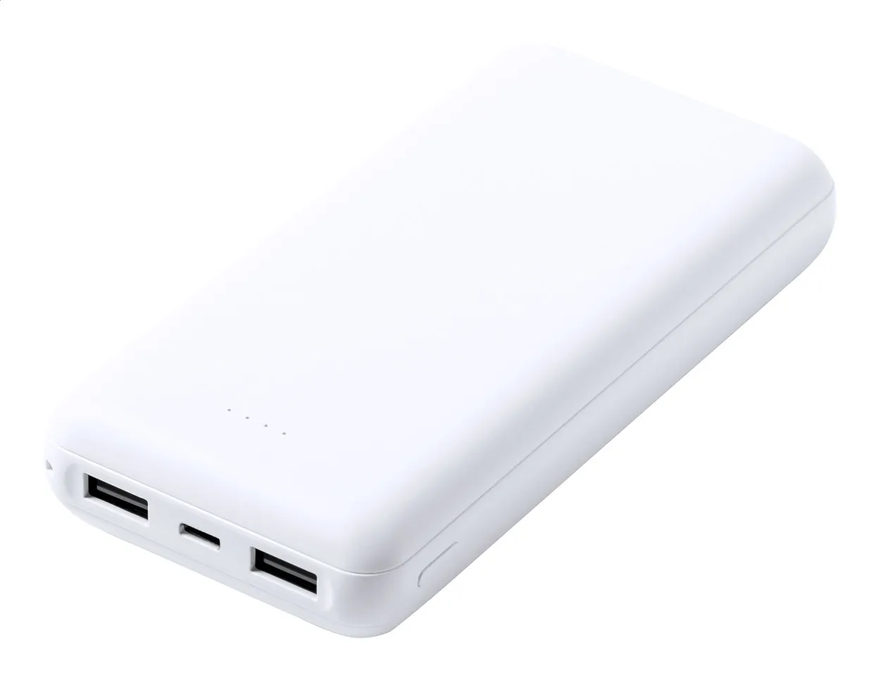 Plastični USB power bank s baterijom od 20 000 mAh. S 1 USB-C i 2 USB priključka za punjenje. Power bank se može puniti kroz USB-C priključak.