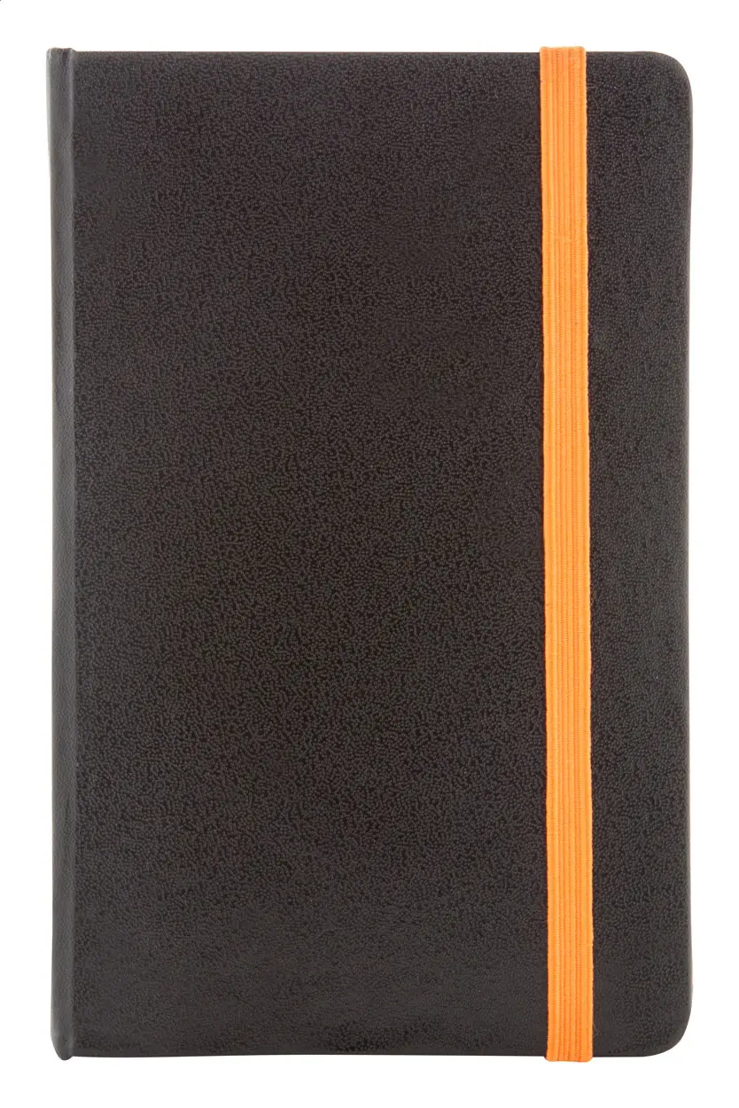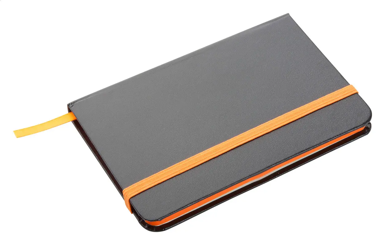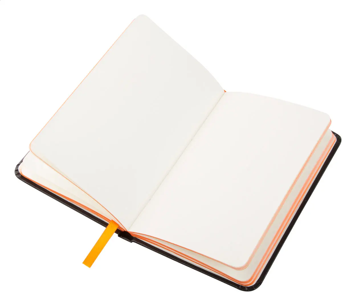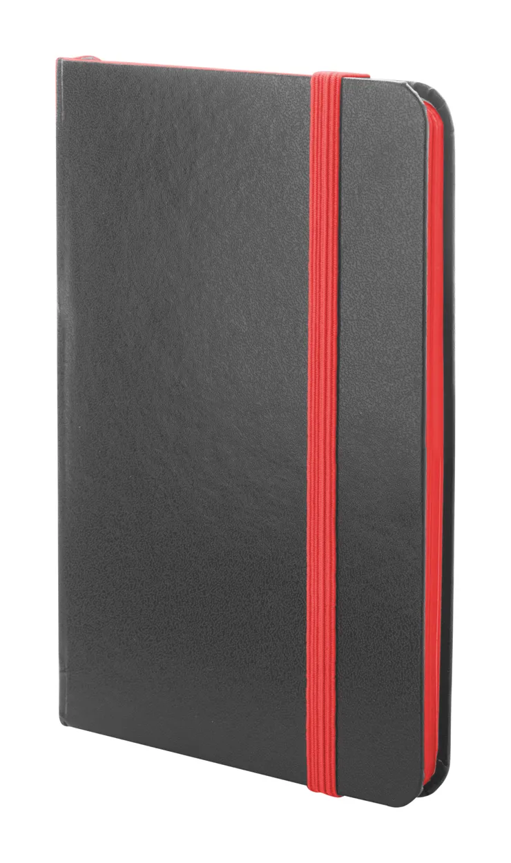 Bilježnica presvučena papirom s 80 praznih listova, oznakom za knjige i gumicom u boji koja se podudara sa stranom.
