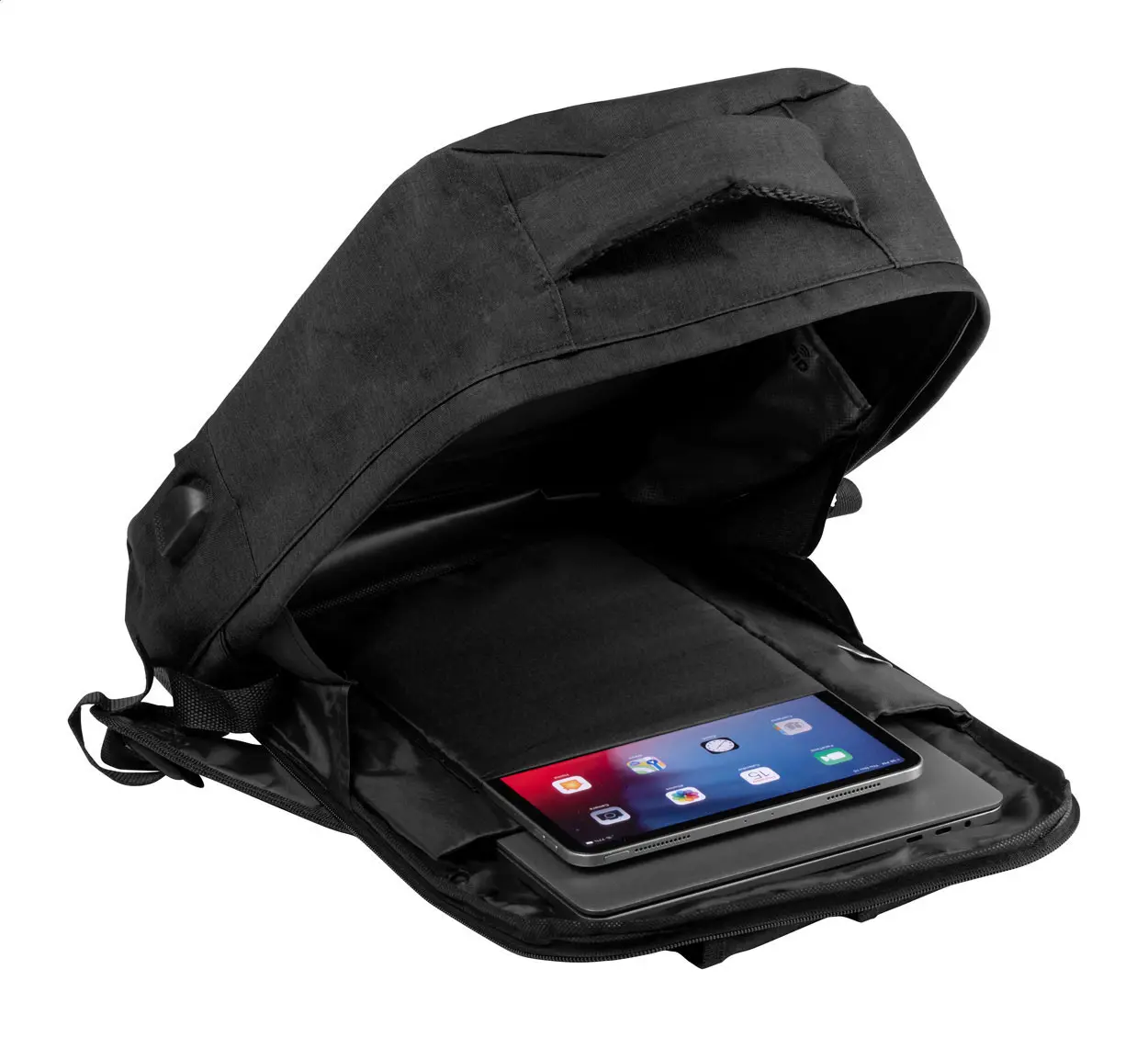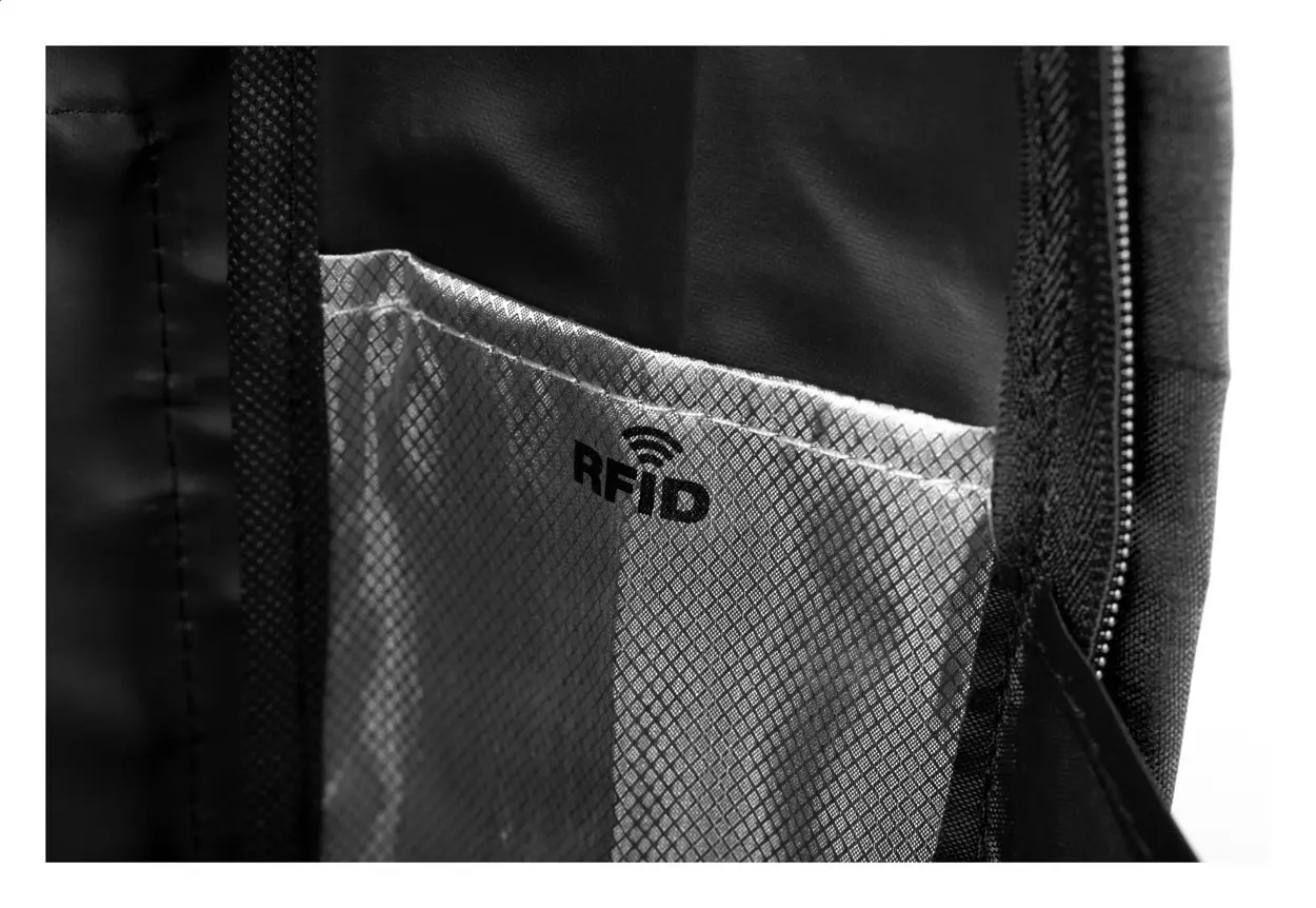 €19.56RFID zaštićeni ruksak protiv krađe s više pretinaca na patentni zatvarač, podstavljeni pretinac za laptop (15") i tablet (10"), podstavljeni leđni dio i naramenica. S ugrađenom USB vezom za power bank. 300D poliester.