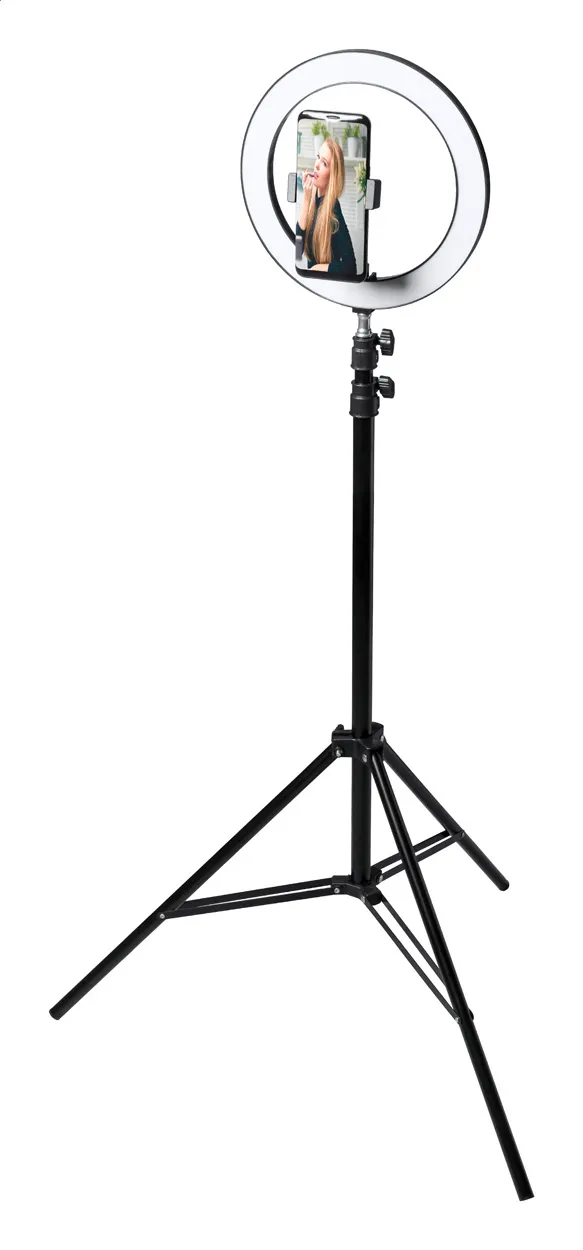 €42.56Selfie prstenasto svjetlo s podesivim stativom i držačem za telefon. S 120 LED dioda i podesivom svjetlinom. Uključuje USB kabel za punjenje.