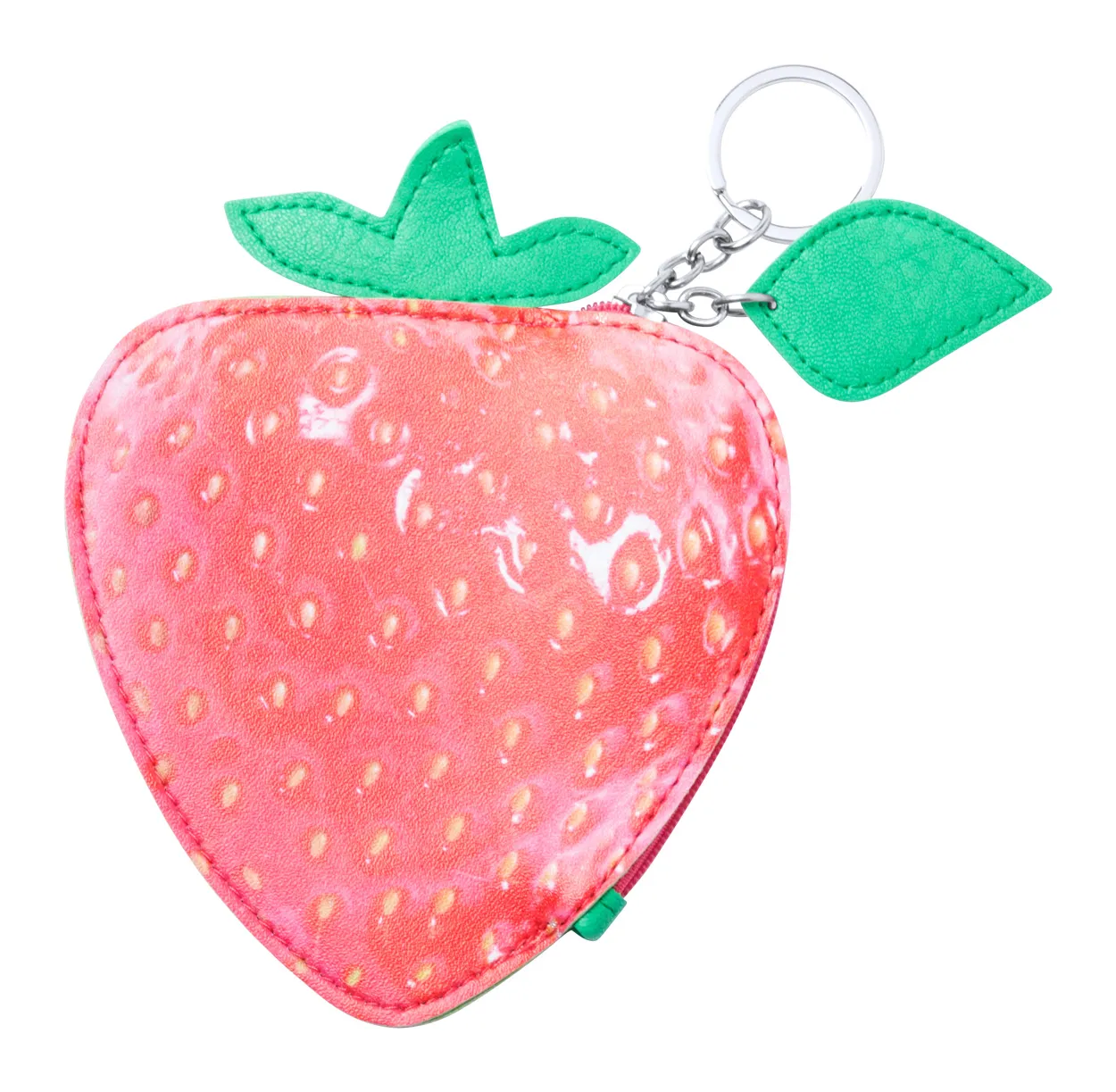 Mini novčanik u obliku voća s patentnim zatvaračem i metalnim prstenom za ključeve, izrađen od PU kože.