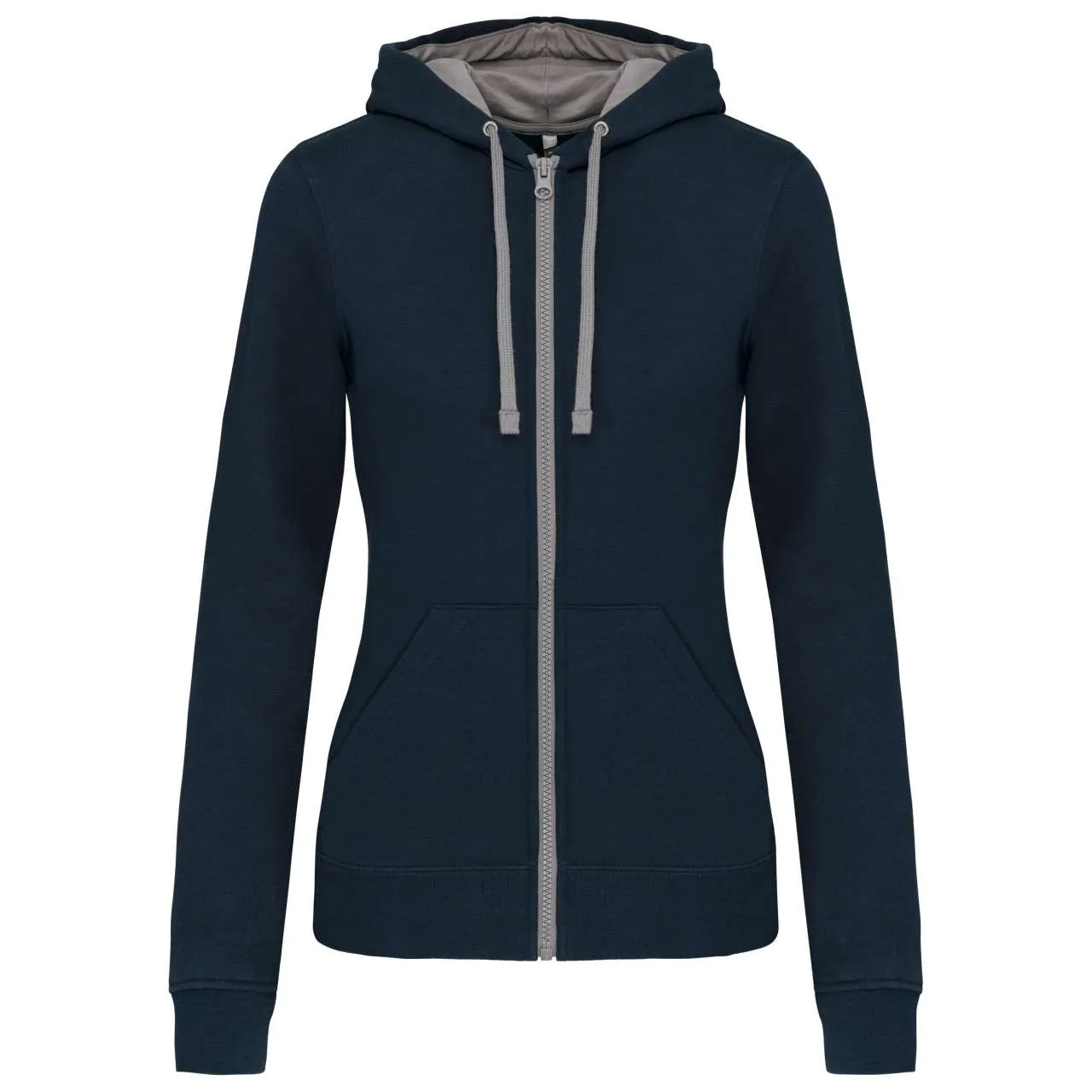 ženska kontrastna hoodie majica s patentnim zatvaračem