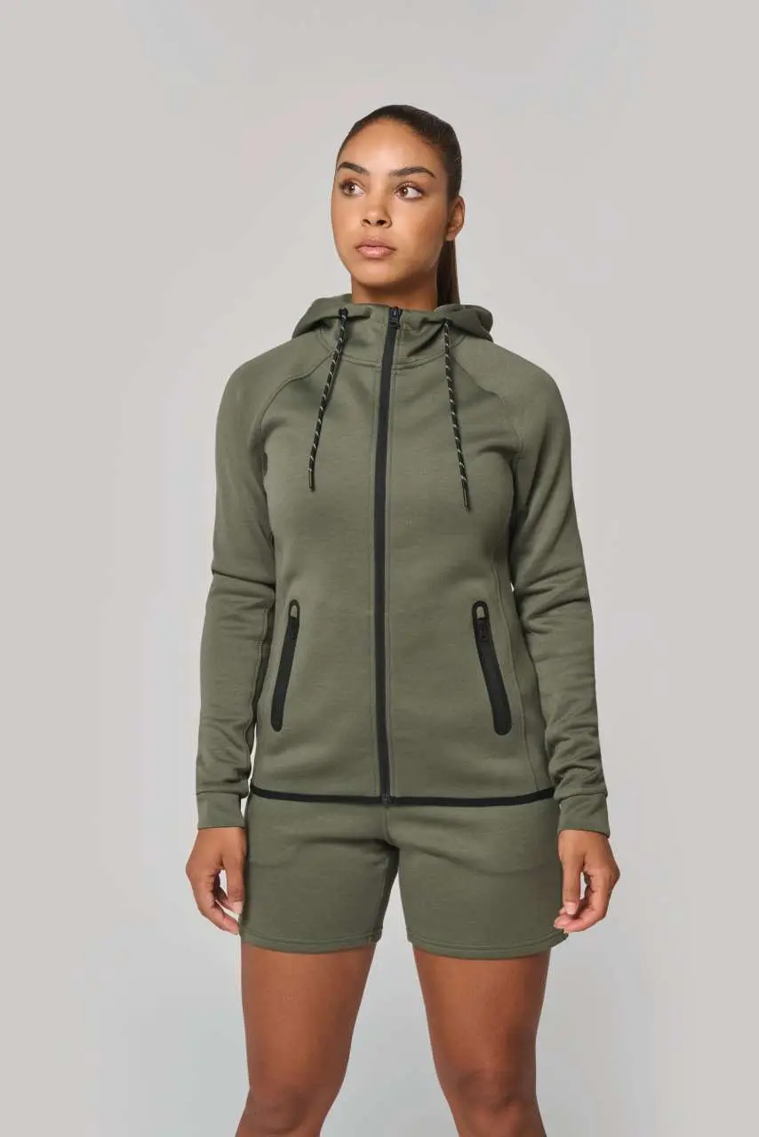 €31.4594% poliester/ 6% elastan (Boje s efektom meliranja: 79% poliester/ 15% viskoza/ 6% elastan) Izuzetno udobna tkanina Patentni zatvarač 2 prednja džepa s patentnim zatvaračem i zalijepljenim šavovima Hoodie s podstavom od 65% poliester/ 35% viskoza i dvobojnom vezicom s plastičnim vrhovima Manšete s kontrastnim elastičnim dijelom Kontrastni rubovi na dnu i kontrastni patentni zatvarači - Crni na svim bojama i Tamno sivi na boji Ash Heather