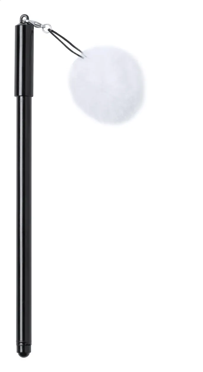 Plastična kemijska olovka s poliesterskim pompom. S plavim punjenjem.