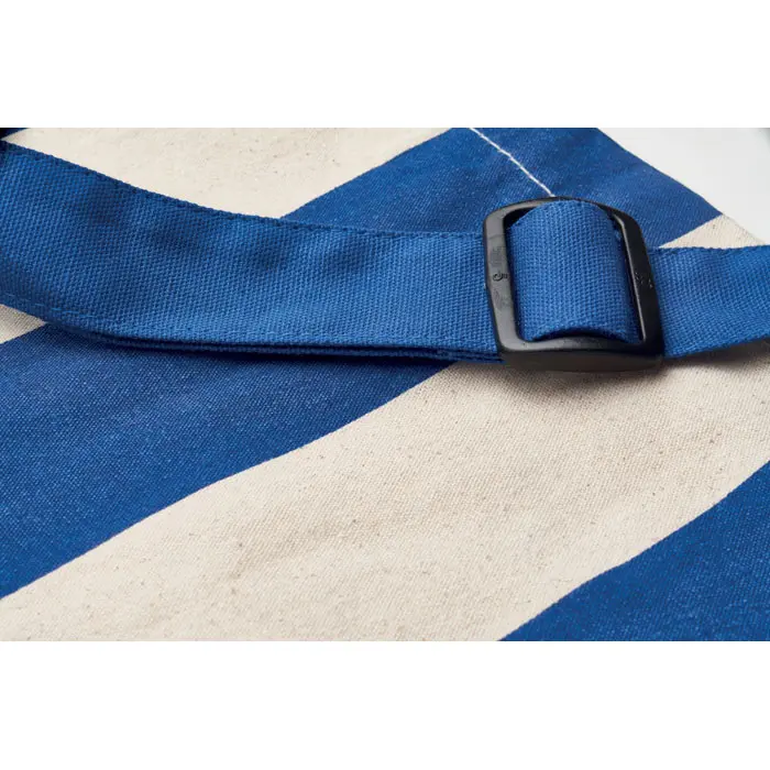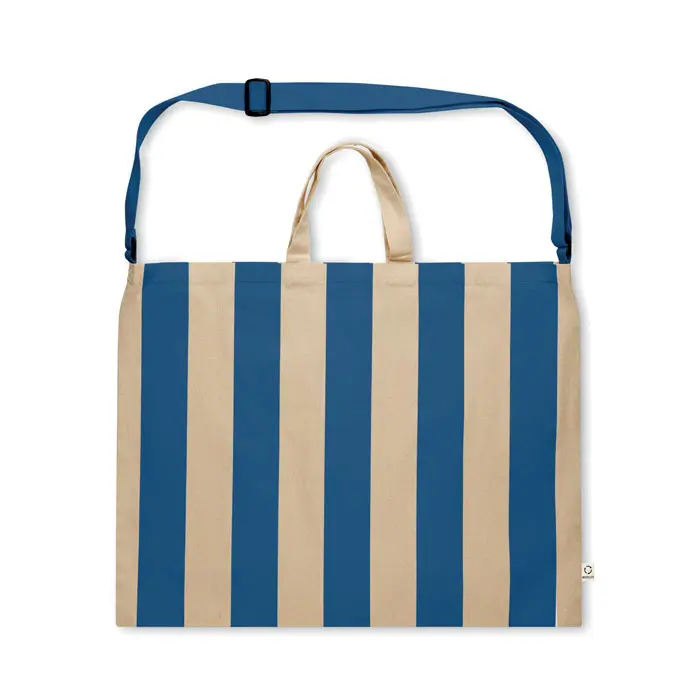 €5.25Ekstra velika prugasta torba za plažu od 280 g/m² recikliranog pamuka (80%) i recikliranog poliestera (20%) s unutarnjim džepom, kratke ručke i jedan veliki podesivi remen za nošenje
