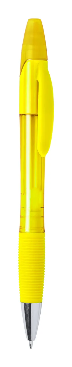 Plastična kemijska olovka s istaknutim markerom u odgovarajućoj boji na vrhu. S plavim punjenjem.