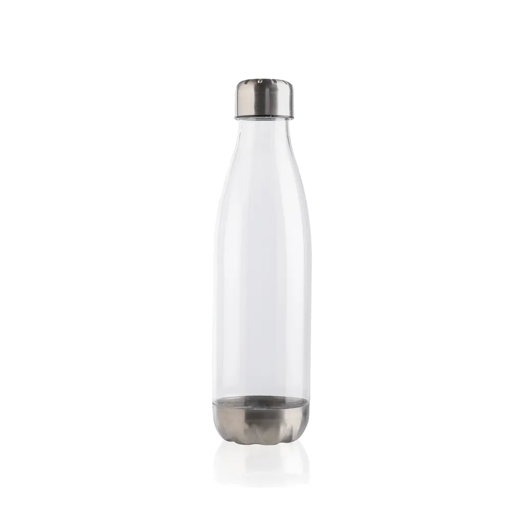 Boca za vodu s nepropusnim poklopcem i dnom od nehrđajućeg čelika te prozirnim tijelom, podloga odgovara većini držača za čaše, kapacitet 500 ml, bez BPA