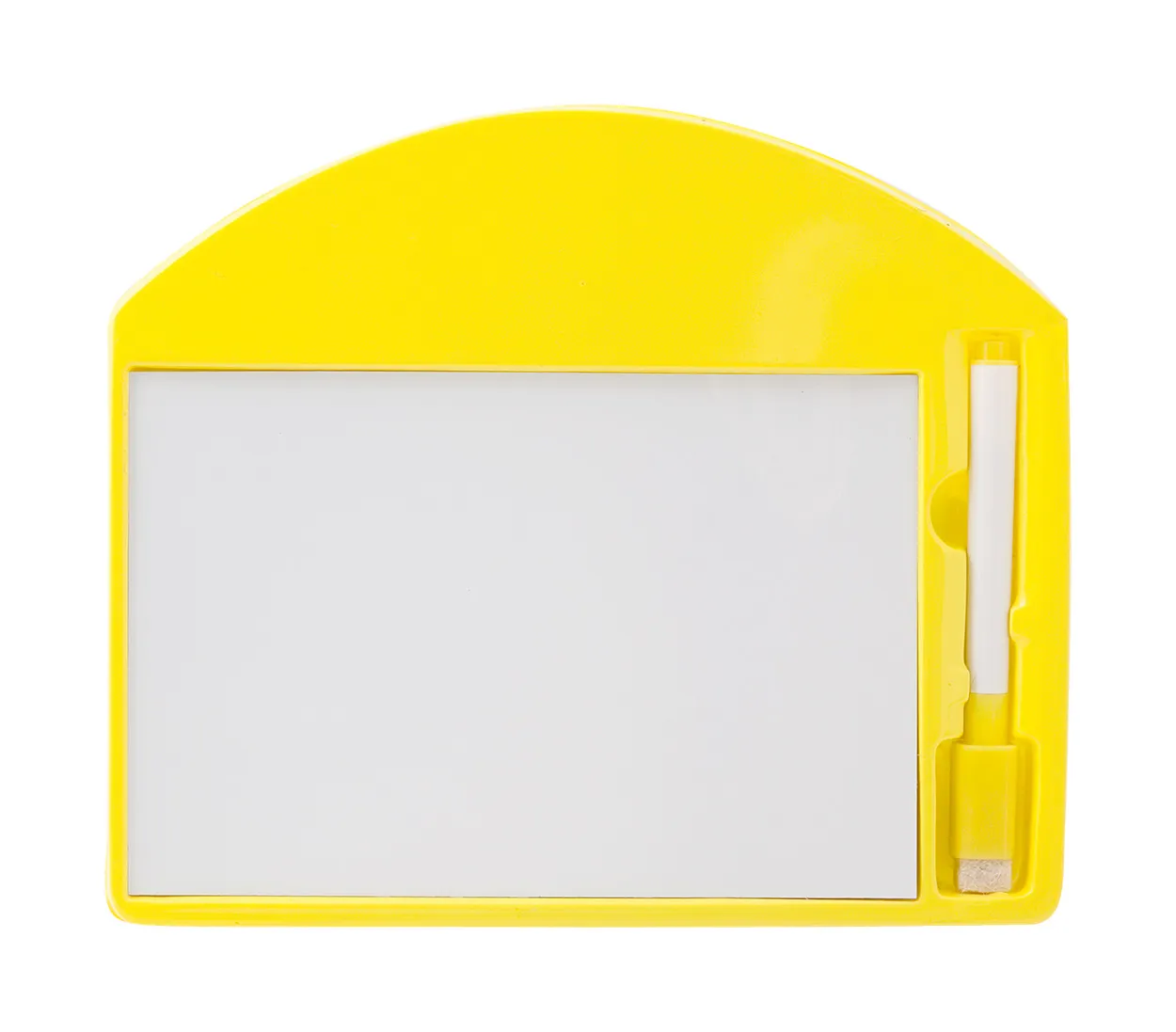 Bijela ploča s flomasterom, čep flomastera sadrži brisač i magnet.